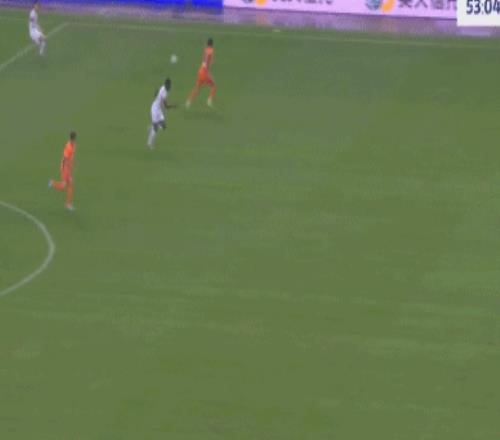 第53分鐘,奧斯卡單刀突入禁區(qū)推射被王大雷用腿擋出底線。