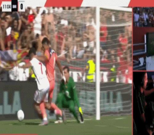 在2025-26賽季西甲第8輪,巴塞羅那客場(chǎng)對(duì)陣塞維利亞。阿勞霍絆人犯規(guī),主裁判回看慢鏡頭之后判罰點(diǎn)球。