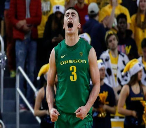 到了大二賽季,他開始全面爆發(fā),被提上了首發(fā)的他,數(shù)據(jù)直接暴增至14.5分、4.8次助攻,三分球命中率更是驚人的41.3%,賽季結(jié)束后也是入選了Pac-12的最佳陣容。盡管大三賽季,他的數(shù)據(jù)略有下滑,但已經(jīng)成為了球隊(duì)絕對(duì)的領(lǐng)袖,連續(xù)第三年幫助俄勒岡大學(xué)進(jìn)入了NCAA的瘋狂三月。