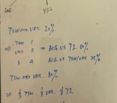 則BLG:遇到T1概率為36.7%,遇到TSW/VKS概率各為31.7%