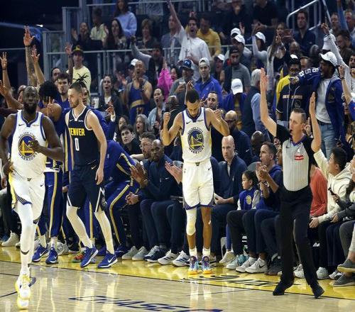 第三節(jié)一上來他就連中兩記三分,然后空切上籃又助攻隊友,緊接著打2+1,單節(jié)庫里砍下13分2籃板1助攻,率隊追分。