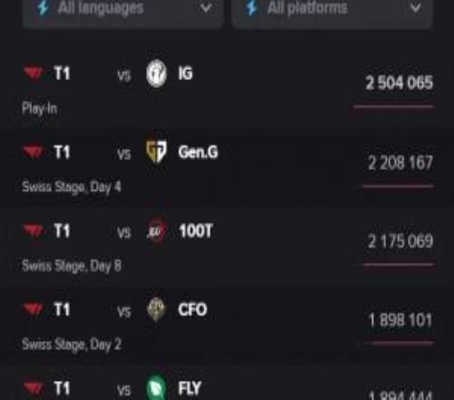 體育資訊10月24日?qǐng)?bào)道宣稱 外媒統(tǒng)計(jì)S15全球總決賽至今海外峰值前五的比賽均有T1