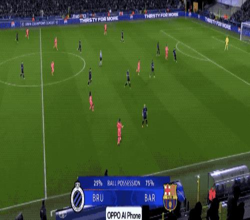 巴薩氣勢(shì)如虹,殺得興起,10名球員都?jí)哼^(guò)半場(chǎng)。第16分鐘,布魯日打出經(jīng)典的快速反擊,從本方禁區(qū)大腳解圍到進(jìn)球,全部都是一腳傳球。
