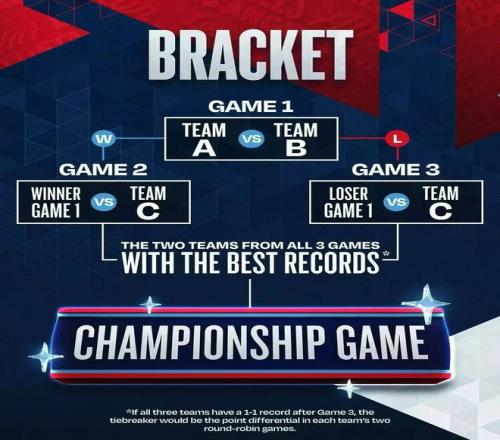 屆時(shí)兩支由美國(guó)球員組成的球隊(duì)(美國(guó)隊(duì))和一支由國(guó)際球員組成的球隊(duì)(世界隊(duì))將以循環(huán)賽制進(jìn)行競(jìng)爭(zhēng),共包括四場(chǎng) 12 分鐘的比賽。這三支球隊(duì)每隊(duì)至少將有八名球員。