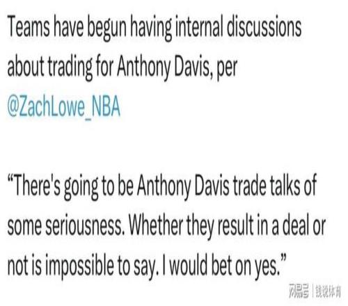 北京時(shí)間11月13日,聯(lián)盟資深記者Zach Lowe的一則重磅報(bào)道打破了NBA的平靜:“接下來將會(huì)出現(xiàn)具有一定嚴(yán)肅性的安東尼-戴維斯交易談判。最終是否達(dá)成交易尚難斷言,但我個(gè)人傾向于認(rèn)為交易成行的可能性更大?!?/p>