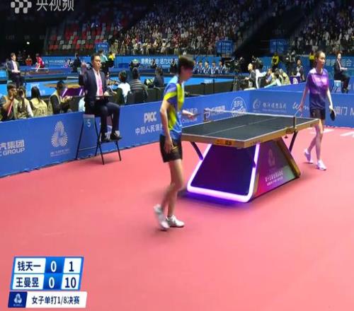 11月12日,全運會乒乓球女子單打1/8決賽,王曼昱4-1(11-1、11-4、11-5、10-12、13-11)戰(zhàn)勝錢天一,晉級八強。