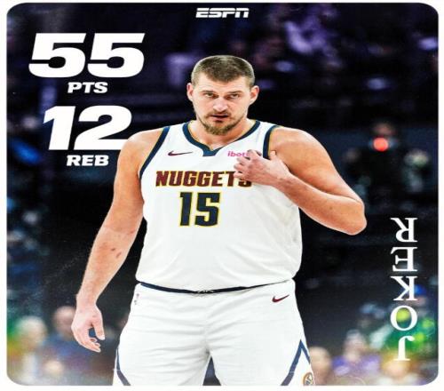 55分暴走+歷史前三高效!約基奇一戰(zhàn)刷爆多項神跡