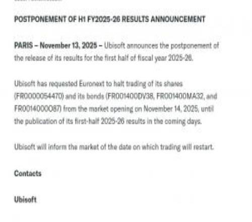 體育資訊11月14日報道宣稱?據(jù)外媒報道,育碧今日突然發(fā)布公告,宣布推遲最新財報的公布,并且暫停了股票和債券的交易。具體公布財報時間和恢復交易時間待定。