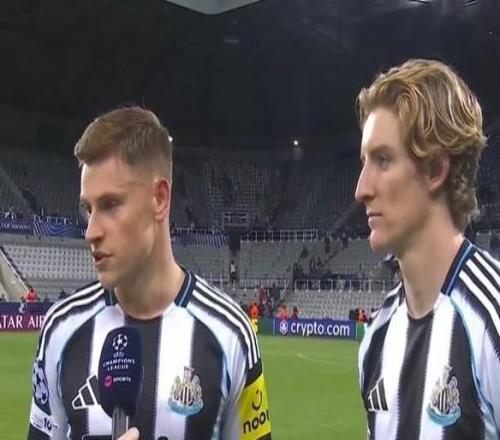 歐冠聯(lián)賽階段第3輪一場(chǎng)較量,紐卡斯?fàn)柭?lián)主場(chǎng)3-0完勝本菲卡。賽后,進(jìn)球功臣安東尼-戈登和哈維-巴恩斯在場(chǎng)邊接受了TNT體育的采訪。哈維-巴恩斯表示:“上賽季我們沒有參加歐洲賽事