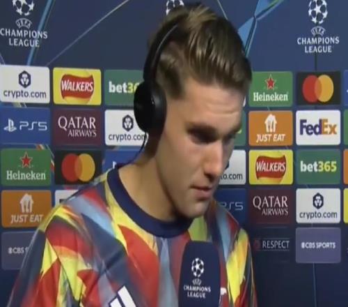 在主場(chǎng)4-0戰(zhàn)勝馬競(jìng)的賽后,本場(chǎng)比賽打進(jìn)兩粒進(jìn)球的阿森納前鋒哲凱賴什接受了CBS sports的采訪。歡迎來(lái)到節(jié)目,維克托!先和觀眾們打個(gè)招呼吧。大家好!今天太出色了,梅開二度幫助球